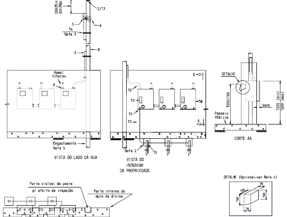 6. Detalhes Construtivos: São fornecidos detalhes técnicos sobre a instalação de eletrodutos, caixas de medição, quadros de distribuição e outros componentes elétricos.
